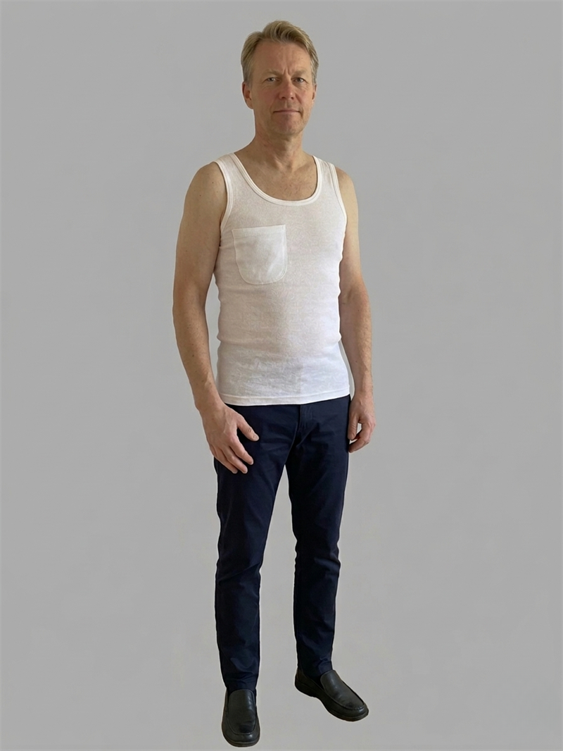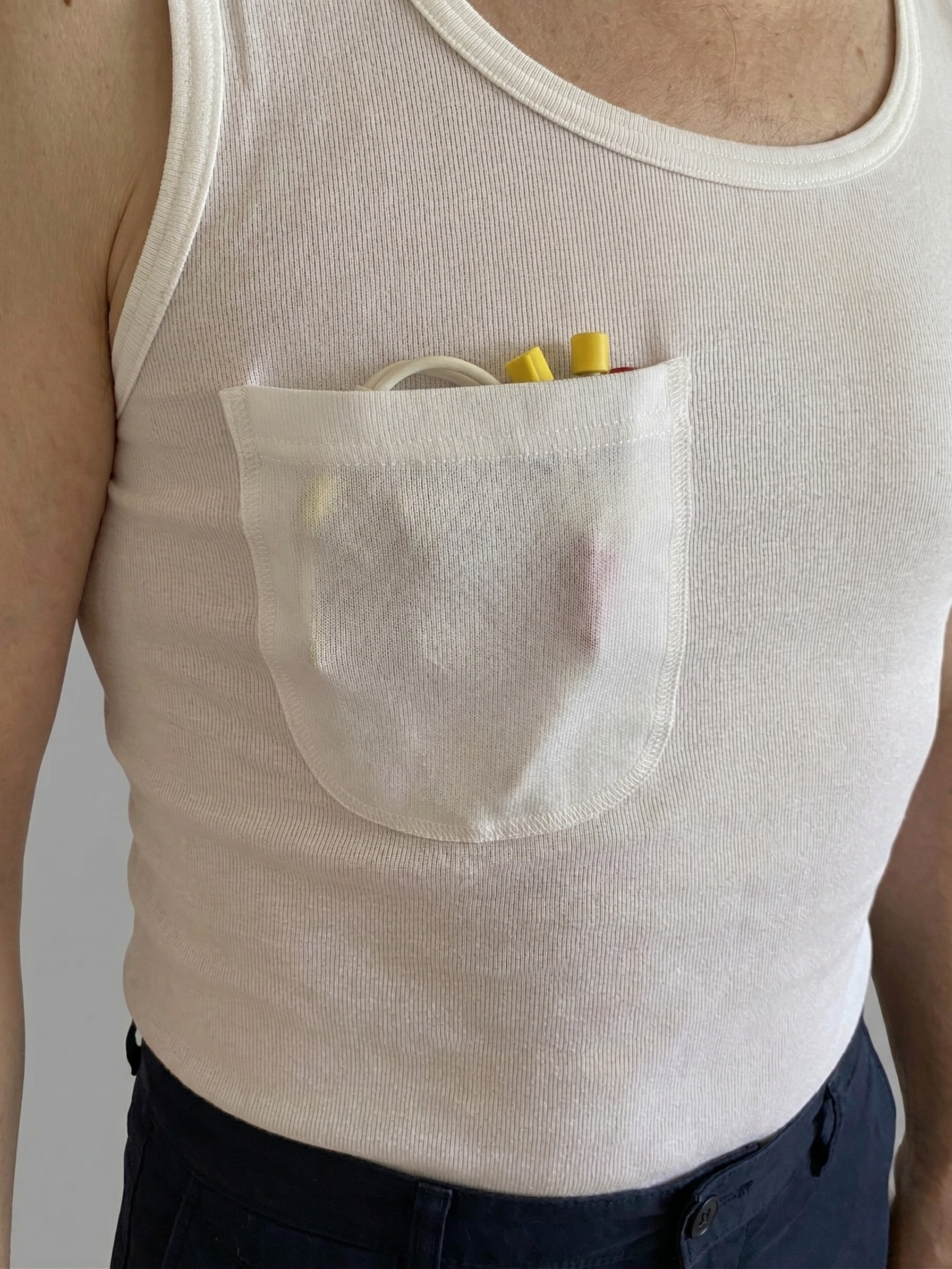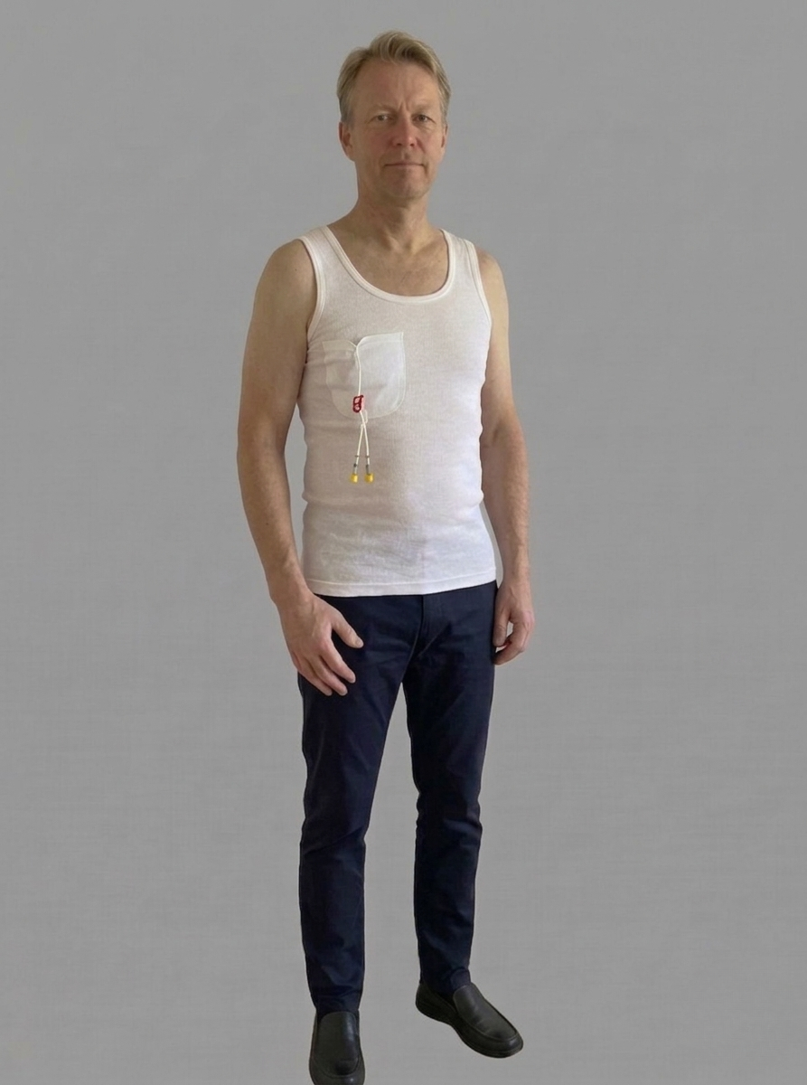 Undertrøjen er designet til at opbevare slanger fra CVK i en lille diskret lomme, når disse ikke benyttes.